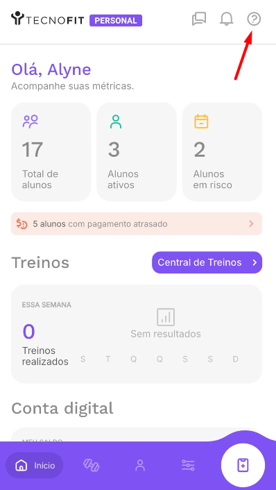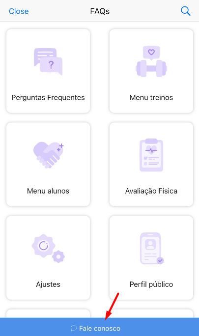 Palavras-chave: suporte, chat, falar com o suporte, atendimento Tecnofit Personal.
