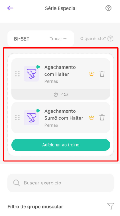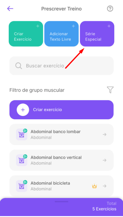 - Como adicionar uma série especial no treino do aluno
