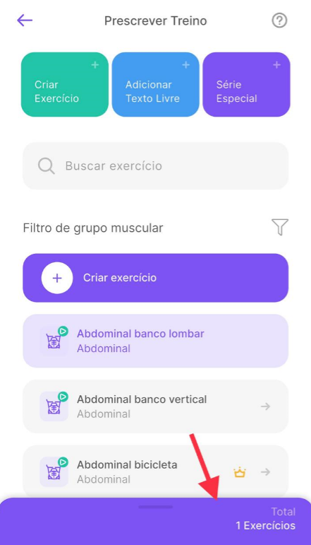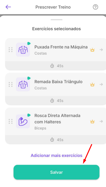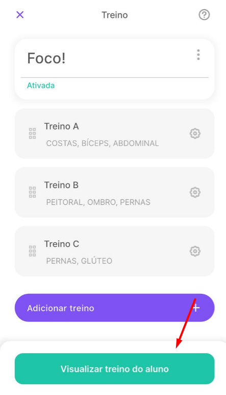 Após salvar, você poderá revisar o treino e visualizar como ele aparecerá para o aluno.